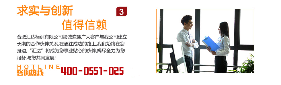 ??合肥匯達標識有限公司成立于2005年3月15日是從事現代標識、雕塑、信報箱、景觀小品等整體規劃,設計,制作及安裝于一體的專業性公司。公司成立了專業的產品技術中心和現代化的大型生產廠房。擁有一支由資深設計師,工程師,客服代表,熟練技工組成的精英團隊,具有一流的設計能力和豐富的施工經驗。目前完成過項目達上千個,已成為了眾多房地產公司 ,建筑建設公司 、園林公司、 設計院所 、裝飾公司、廣告公司的長期供應商。 ??服務過的客戶有萬達 龍湖 綠地 碧桂園 融創 旭輝 祥生 榮盛 高速 寶業等知名地產公司,和順 徽鹽 京東方 安徽名航,中國科學院合肥物質研究院,安徽省水利水電置業發展有限公司等具有國有背景的知名單位和地產公司。完成了安徽合肥濱湖新區綠道標識提升 安徽合肥高新豪生酒店 安徽合肥長江東路憲法主題廣場 安...